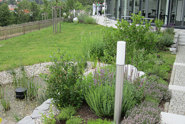 In einem Teilbereich des Grundstücks wurde das „Sanctuarium“ nach einem Entwurf der Geomanten Anja Kraft und Marko Kraft-Slacanin angelegt. Es ist ein Heilort mit besonderen Punkten, die zum Aufenthalt und zum Kraft tanken einladen. Die Steinskulptur steht in Verbindung mit dem „Drachennest“, einer geomantischen Installation, die sich im Foyer des Gebäudes befindet. Beides ist vom Künstler Peter Frank gestaltet.