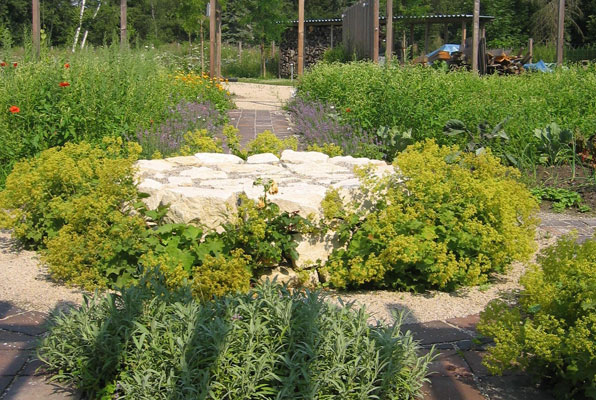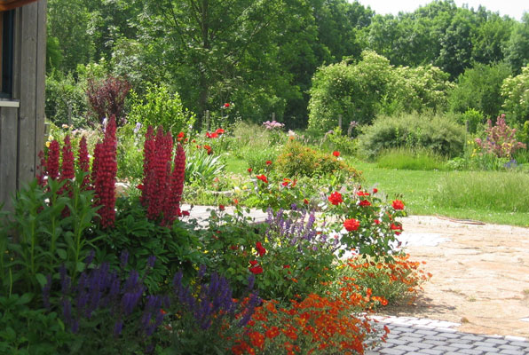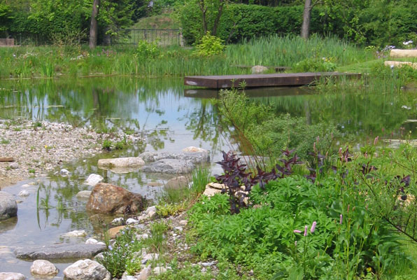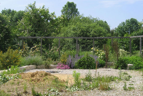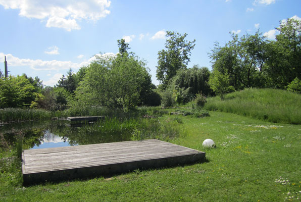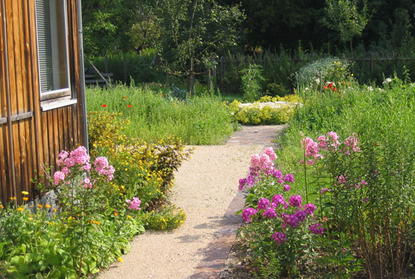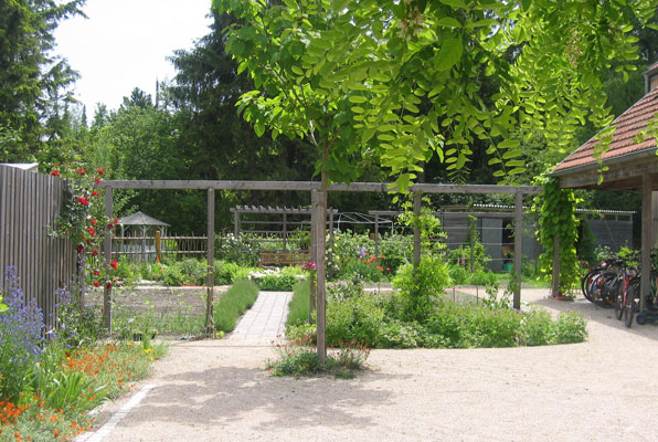Das große Grundstück war ursprünglich von einem dichten Kranz sehr hoher Fichten umgeben und ähnelte einer Waldlichtung. Verschiedene Plätze wurden in ihrer seelischen Präsenz gestärkt und in die Gestaltung eingebunden.